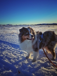 Vi har bott 1.5år i fjällen och och återvände till Stockholm i april förra året. I fjället har vi levt livet med mycket rörelse och motion. Han är van att dra på skidor, cykel och löpning. I Stockholm har han acklimatiserat helt okej med alla nya intryck och miljöer, hanterar trafik, människor och rörelse bra. Däremot tampas han fortfarande med hundmöten och behöver ledas vidare i den processen speciellt nu när det blivit mer av det. Han behöver någon som är väl införstådd med en Aussie och vet hur mycket tid och engagemang dom kräver. Han är genomsnäll och kelig som få och har en tydlig av och på knapp. Sen måste han guidas ibland genom tydliga avgränsningar, när han hamnar i en ny miljö.