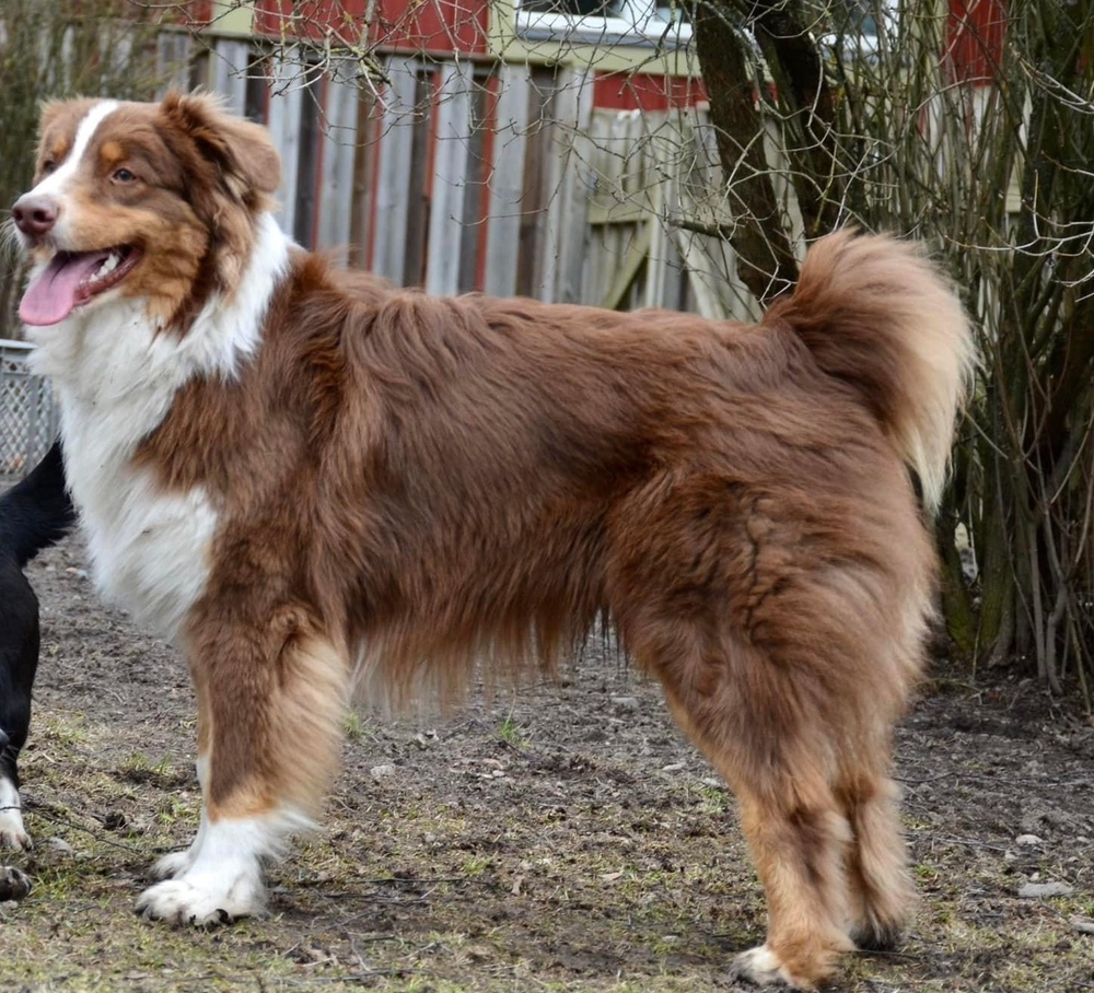 Foxy är en glad och kärleksfull, ganska stor Aussie. Han är otroligt mat- och godismotiverad och lär sig nästan vad som helst om man erbjuder godis som belöning. Inte överviktig. Älskar sök och andra lekar men inte särskilt intresserad av leksaker. Vi har gått en utbildning där vi tagit examen i narkotikasök och han kan en del trick. När vi gjorde BPH reagerade han inte alls på skott men senare har han utvecklat skotträdsla så att promenera nära skjutbanan när det skjuts där går inte så bra.